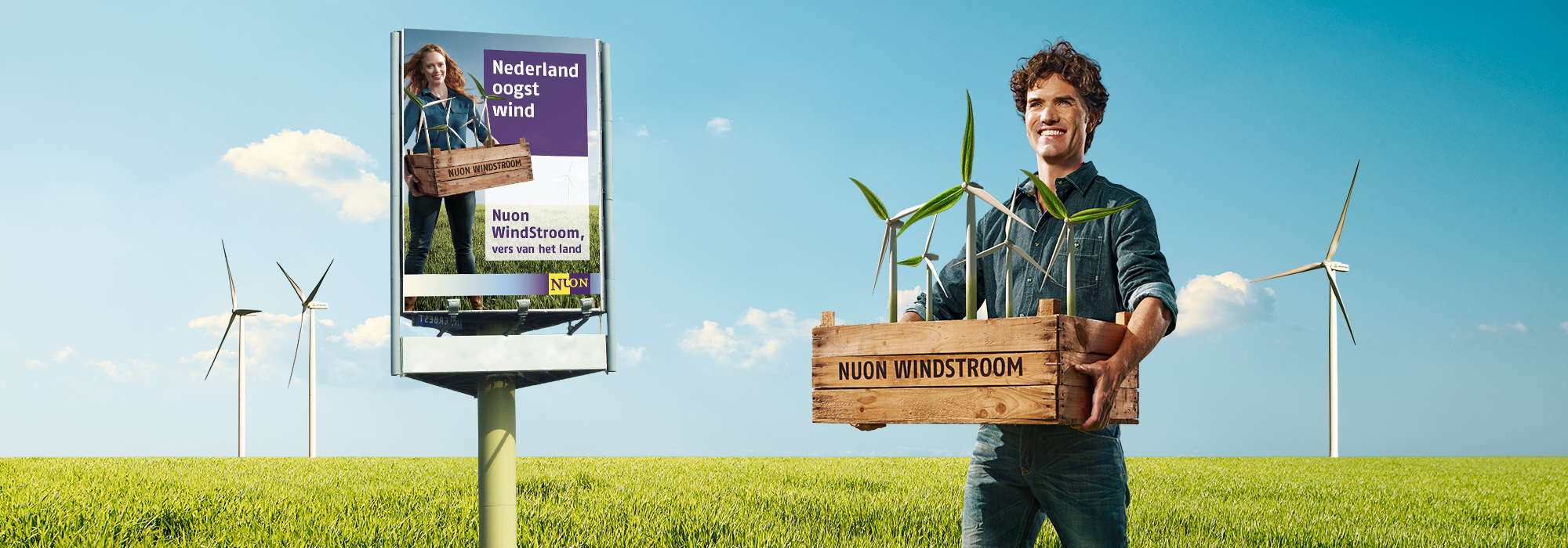 Voor Nuon-klanten ontwikkelden wij een mailing met het aanbod om als eerste Nuon WindStroom, vers van het land, te kunnen oogsten! De campagne was niet alleen langs de snelweg te zien, maar ook in print, op reclamemast en abri’s, op het station en zelfs op een zeppelin!