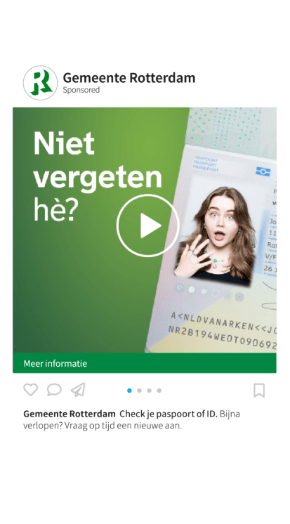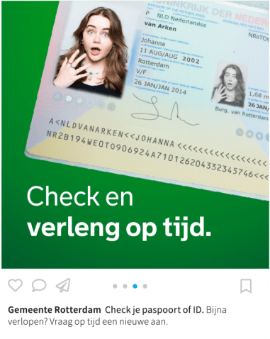 De vraag aan 0to9 is om met een slim concept te komen en daarop volgend het uitwerken van de campagne met het doel om Rotterdammers te attenderen op het mogelijk verlopen van hun reisdocumenten en het op tijd maken van een afspraak bij de gemeente i.v.m. de verwachte drukte. Omdat tussen 2024 en 2029 er van veel Rotterdammers hun paspoort / Id verlopen.