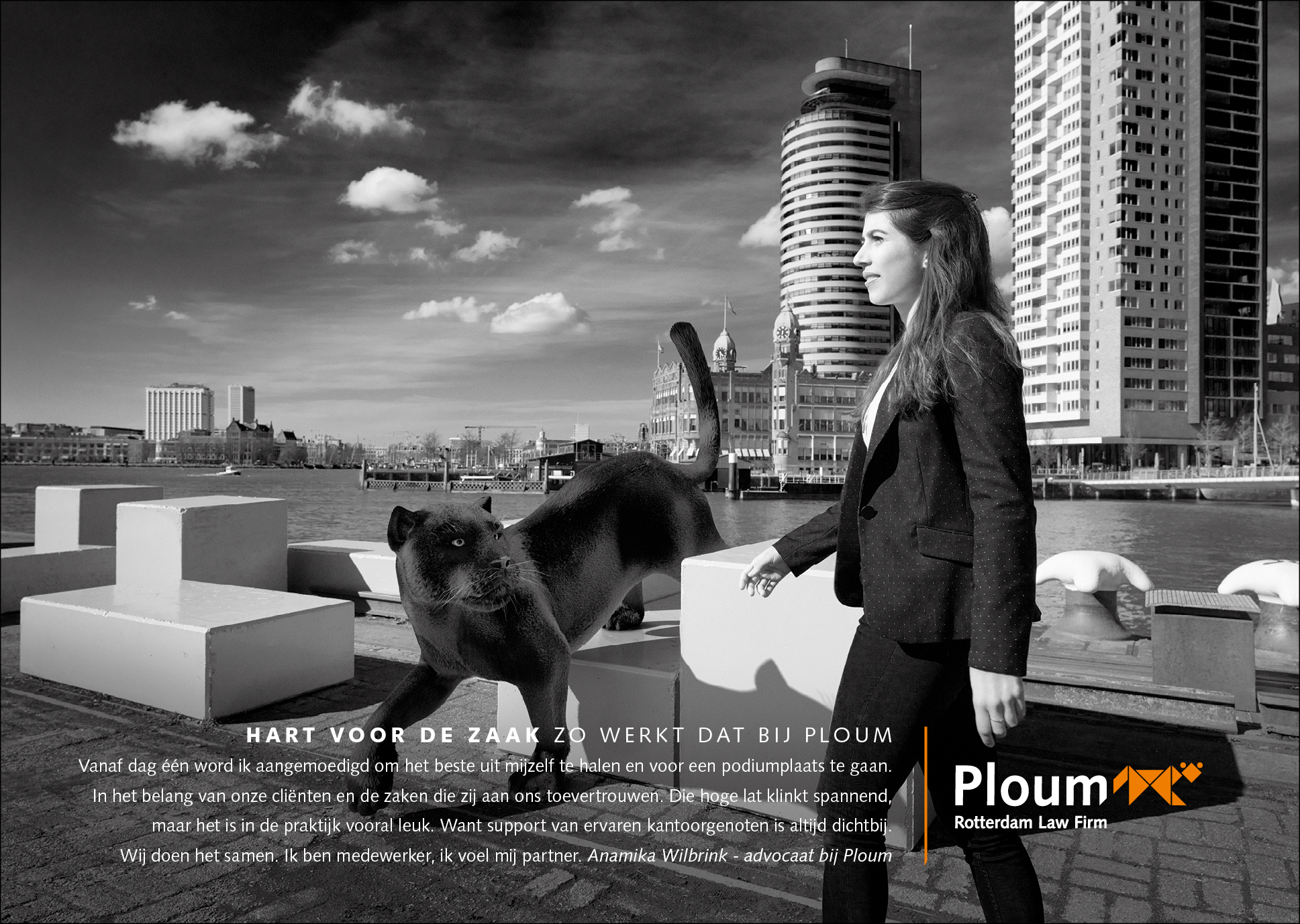 Met Ploum startten wij de vormgeving van de positionering en de BeeldTaal met een Organisatie Waarden Onderzoek. Dat onderzoek maakte duidelijk waar Ploum écht voor staat. Waarom Ploum cliënten en medewerkers heeft, die al vanaf het eerste uur met Ploum mee oplopen. Deze cliënten en medewerkers blijven bij Ploum, omdat Ploum, naast kennis van de wet, iets bijzonders biedt. Vaak is het moeilijk om concreet te maken wat dat dan precies is, maar de interne analyse met het Waarden Onderzoek maakt dat duidelijk. Daarmee zie je direct wat Ploum drijft. Tegelijkertijd maakte de externe analyse duidelijk dat dat naar buiten toe, niet of nauwelijks werd gecommuniceerd. Waarom zou jij jouw zaken aan Ploum moeten toevertrouwen? Waarom is Ploum niet één van de vele advocatenkantoren, maar Rotterdam Law Firm? Wat doet die panter in het logo? En wat heeft de campagne opgeleverd?
