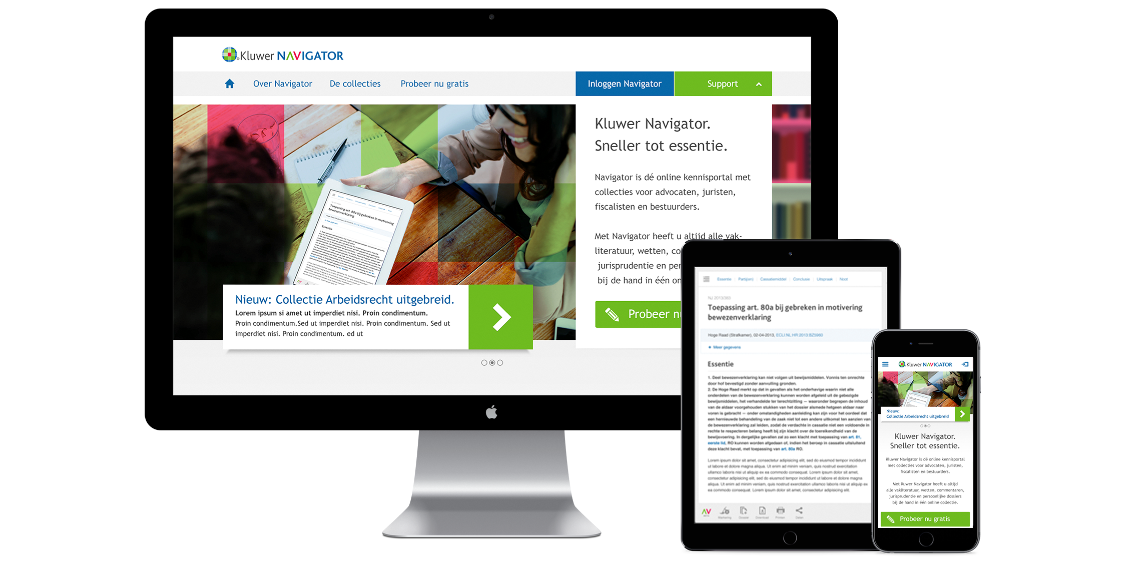 Navigator is de online informatieportal voor juridische, fiscale en overheidsprofessionals. Zij hebben altijd en overal toegang tot tailor made vakinformatie. 0to9 ontwikkelde thematiek, vormgeving en beeldtaal. De essentie van een sterk product.
