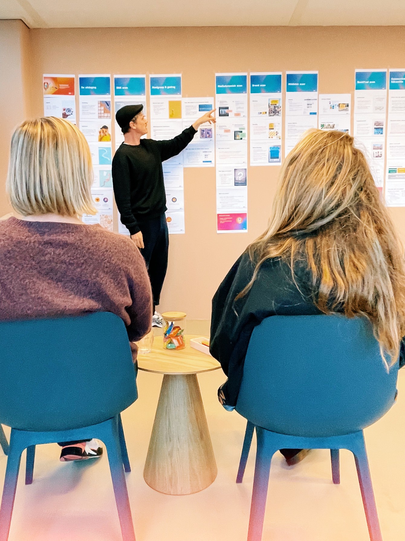 We werken niet vóór, maar mét jou en je team. We hebben onze eigen onconventionele werkwijze. Omdat we geloven dat iedereen in een eigen vorm creatief is. Je draait als klant mee in ons proces. Welke collega's er meedoen, bepaal je zelf. Meestal is dit een afvaardiging van de driehoek directie/raad van bestuur, communicatieteam en HR-afdeling. Van onze kant sluiten communicatie- en cultuurstrategen en creatieven aan. Zij begeleiden jouw team in de reis die wij in hartje Rotterdam voorbereiden. De muursessies zijn voor alle partijen zeer inspirerend. Omdat deze zorgen voor het bepalen van de koers en het team daarmee draagvlak kan creëren bij de andere collega's in de organisatie.